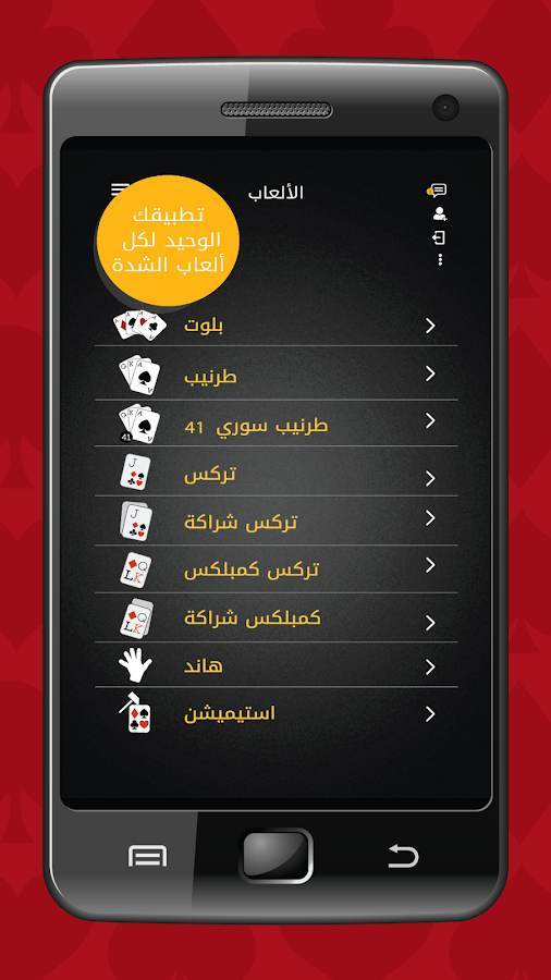 نقدم لكم افضل العاب الورق في برنامج واحد و اونلاين و تستطيع دعوة الاصديقه لي يلعبو معك تركس و طرنيب و اضافة الاصديقة من الفيس بوك و تسجيل الدخول من الفيس بوك ايضا و شرح اللعبة في الاسفل تجد مقطع الفيديو و في اسفله تجد الرابط التحميل.